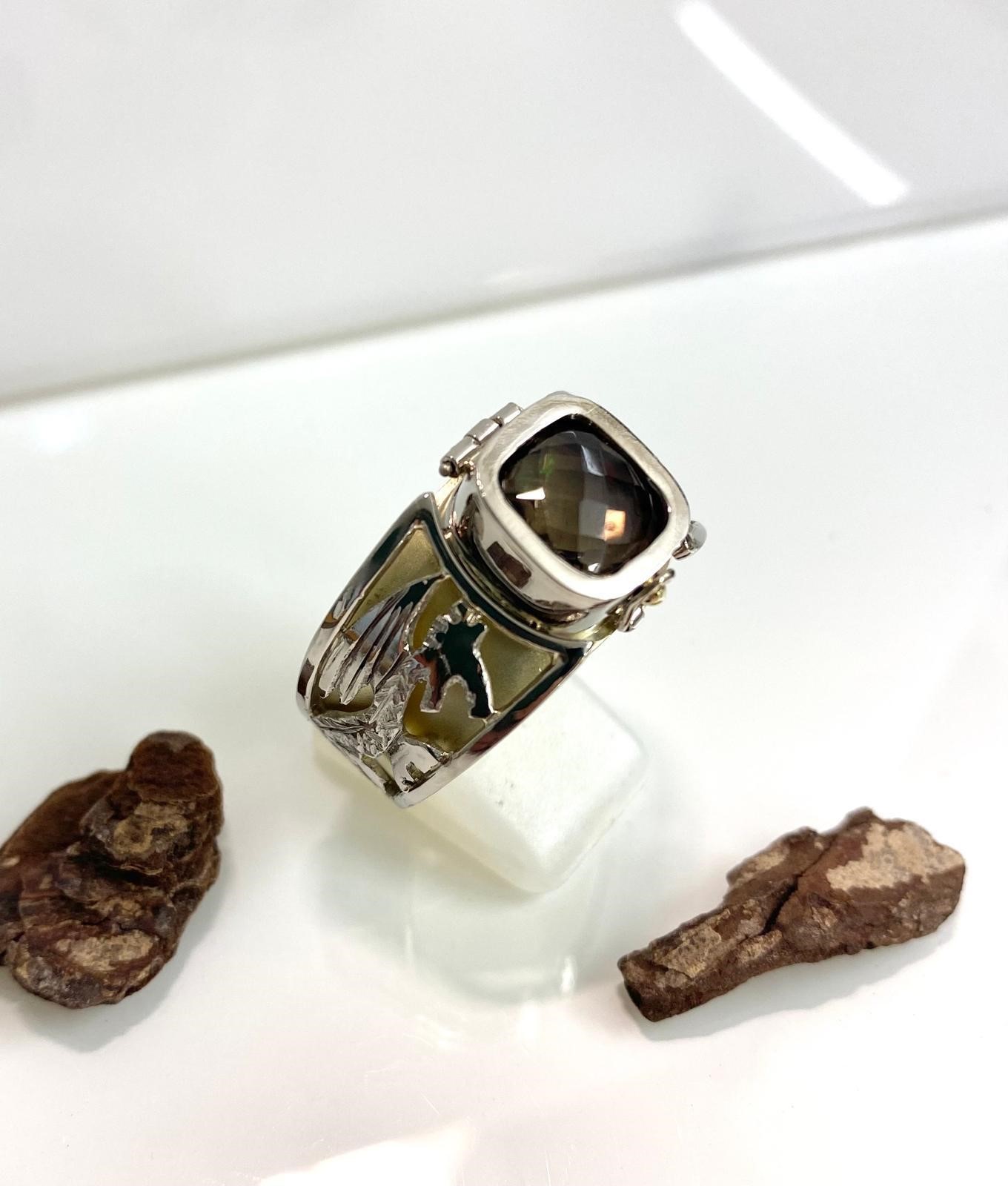 Gelbgold mit Schmortechnik mit Weißgolddraht ohne Steinbesatz